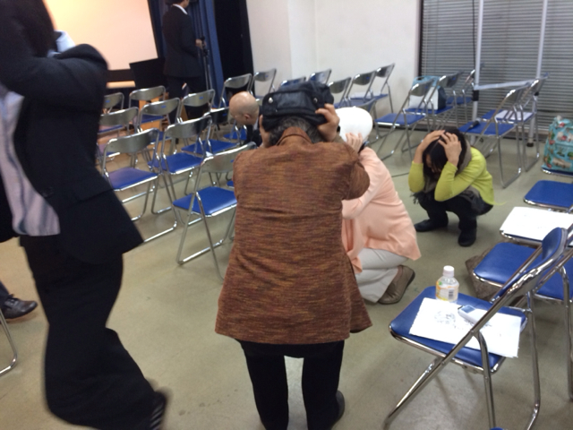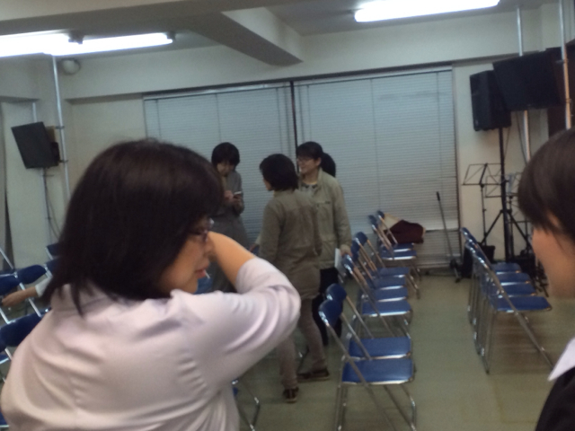 非常階段で降りたことがない人は、今日は非常階段で降りてください。 (右のとこです。)