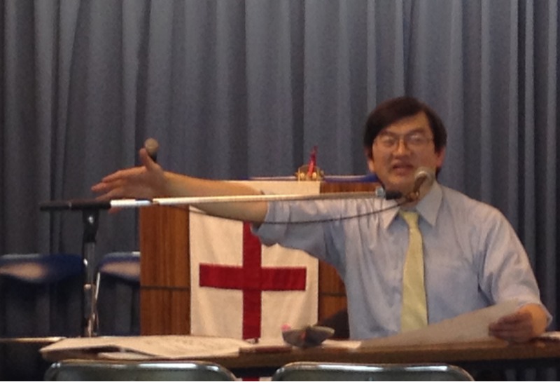 マニュアルを見ながら窪田牧師の説明を聞いています。