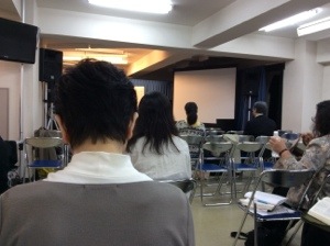前回のスタッフ会の様子! 災害時の訓練について、真剣に聴いてます!