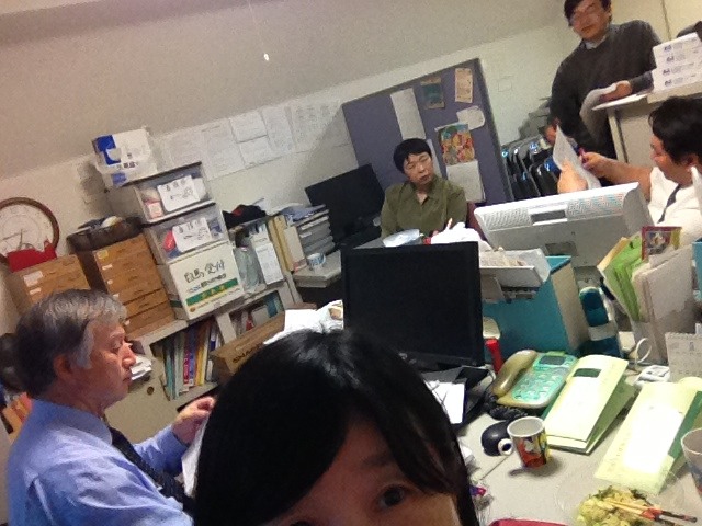 今日行なわれる避難訓練の打ち合わせをしています。 〜教会事務所〜