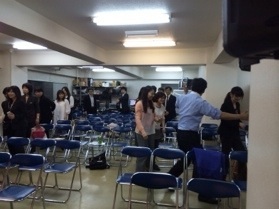 今日は地震を想定した避難訓練をします! 職場や、学校での避難訓練をいろいろ参考にしながら進めます!