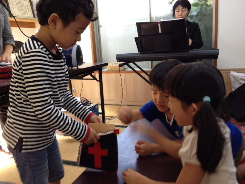 祝福の捧げもの。袋をまわす係は前田のDくん!
