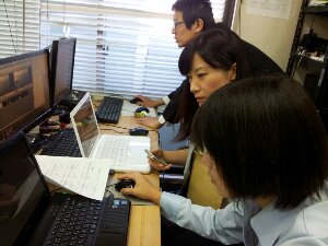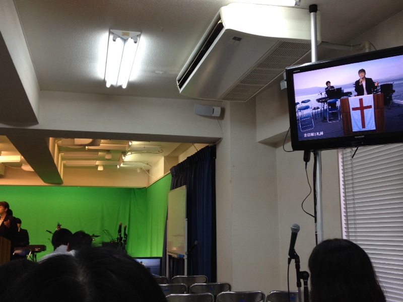 礼拝が始まる前にブログをチェック中?の今井さんです。
