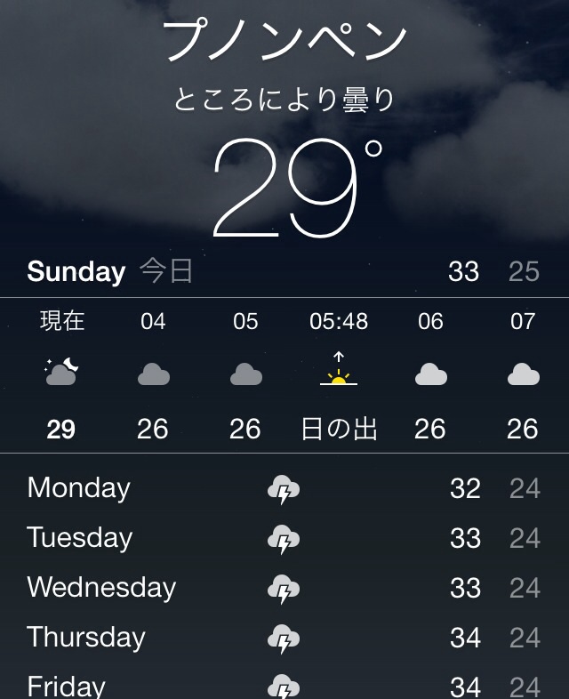 日本との時差3時間のプノンペン、今夜中の2時台ですが、29℃だそうです!