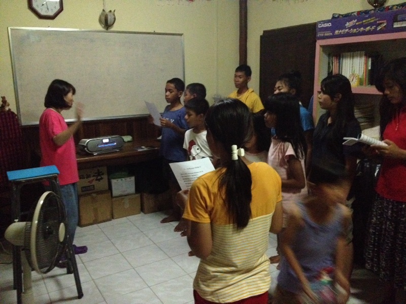 前田さんが賛美指導!みんな、とっても歌が上手ですよ。 カンボジア