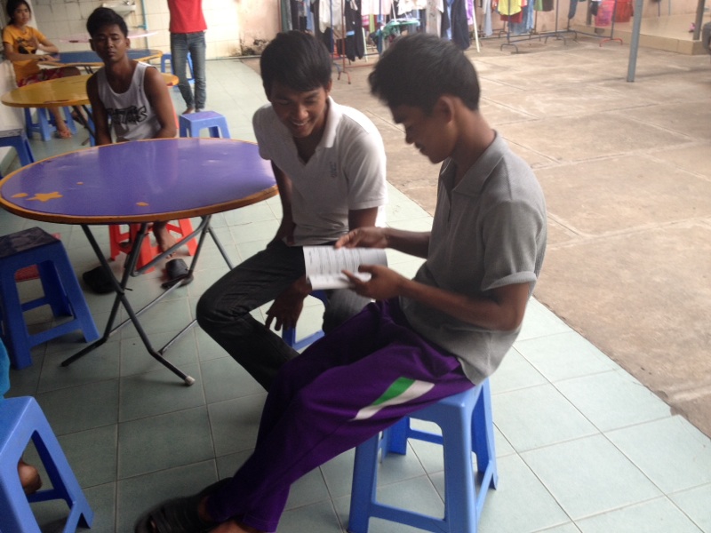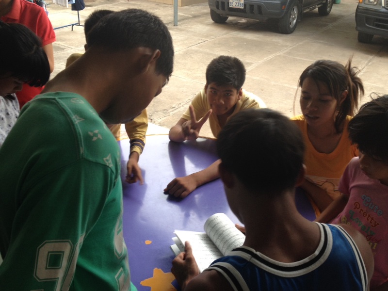 頂いた風のひびき1集を子どもたちに配ります!カンボジア