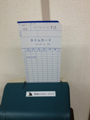最後はタイムカード、朝から強風の中頑張って出勤。今は雨も止み電車も大丈夫。(^∇^)ラスポーザMiki