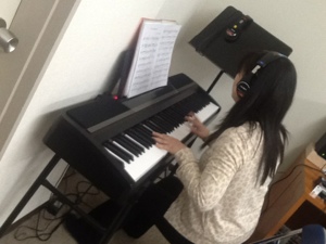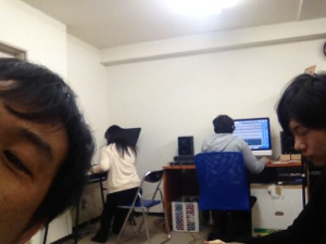 今日も曲のアレンジをしています! 萱野さんの身体が左右に揺れています。 かなり、気合がはいってます(@_@)