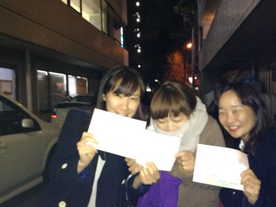 教会の帰り道です。右端、さすが宣伝係のエステルさんはこんな時もチラシを手放しませんでした! 受付スタッフ いまい