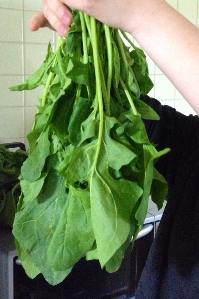 同じマンションの方から、ここの庭で作った(!)というほうれん草を山のようにいただきました。せっかくなので練習の後に、夕飯で少し使います!