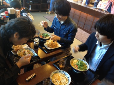 路上ライブの前に、うどん♪ 腹が減ってはライブができぬ。