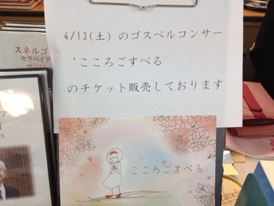 座・高円寺から徒歩2分、東京アンテオケ教会ではこころごすぺるのチケット販売しています!