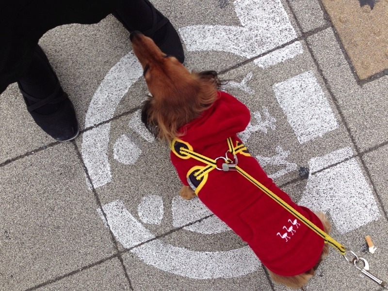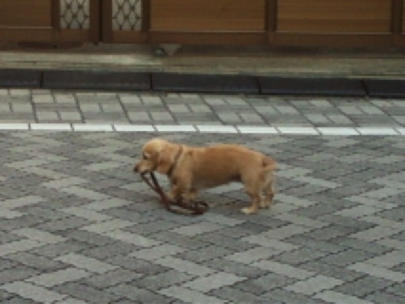 ◆自分のリード(散歩用の紐)をくわえて散歩する自立犬