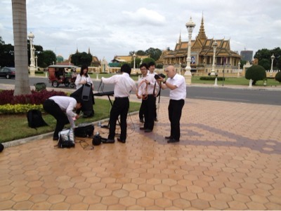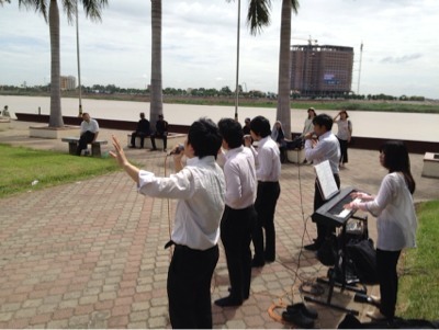 2012年6月、カンボジア首都プノンペンでGiftsがゴスペルを歌いました! 上:トンレサープ川沿い 下:王宮前の広場にて