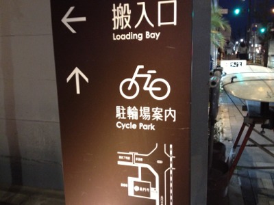 ビルとビルの合間に駐輪場の標識がありました。 自転車の方、見つけてください〜。