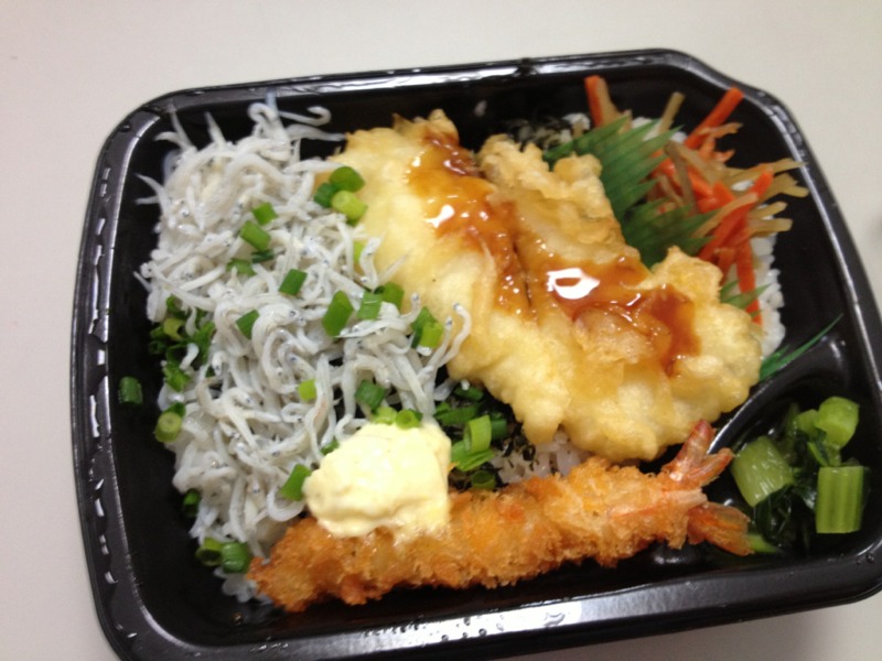 今日のお昼は、お弁当屋さんで、釜あげしらす弁当を買って来ました!