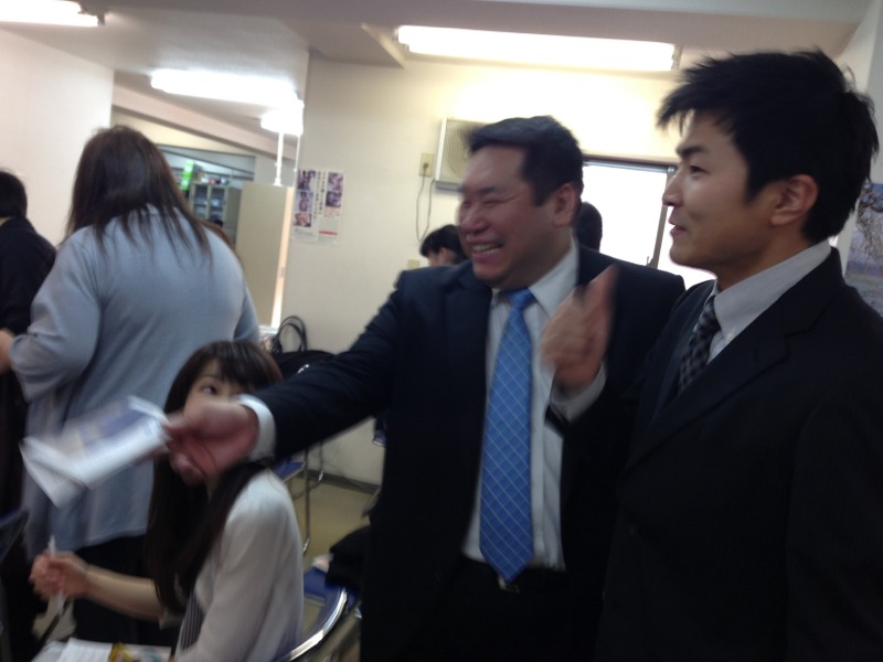 どこの誰かと思うぐらいの、よそ行きの声で