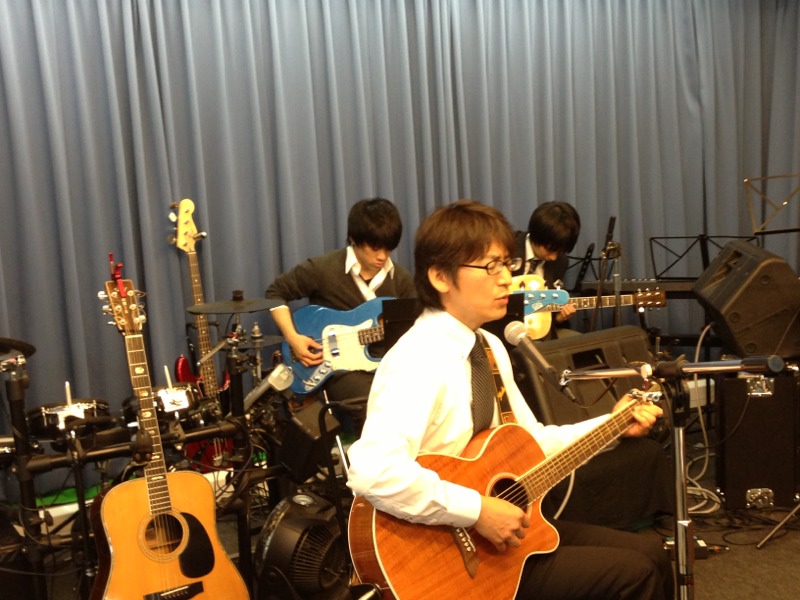 リードボーカル ヨセフさん、メガネをつけて歌ってます。本番では、まず見られないと思われる姿。でも、ブログではメガネキャラクターとして登場する事が多い様な。