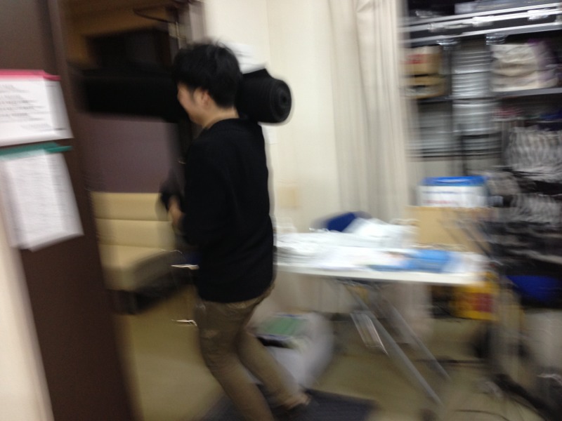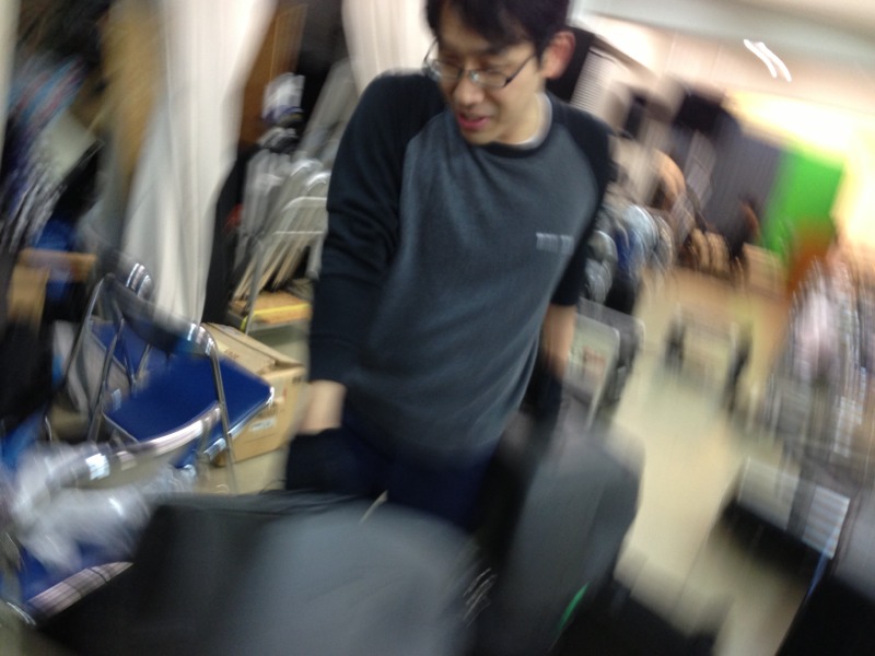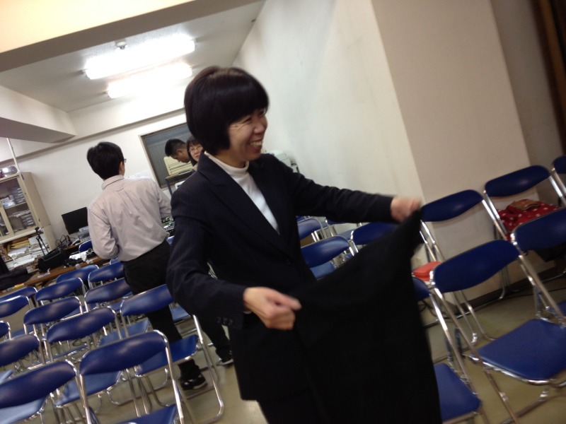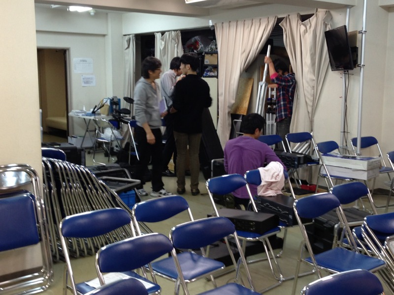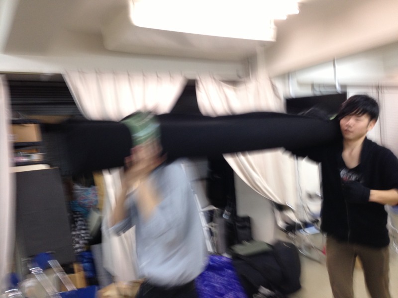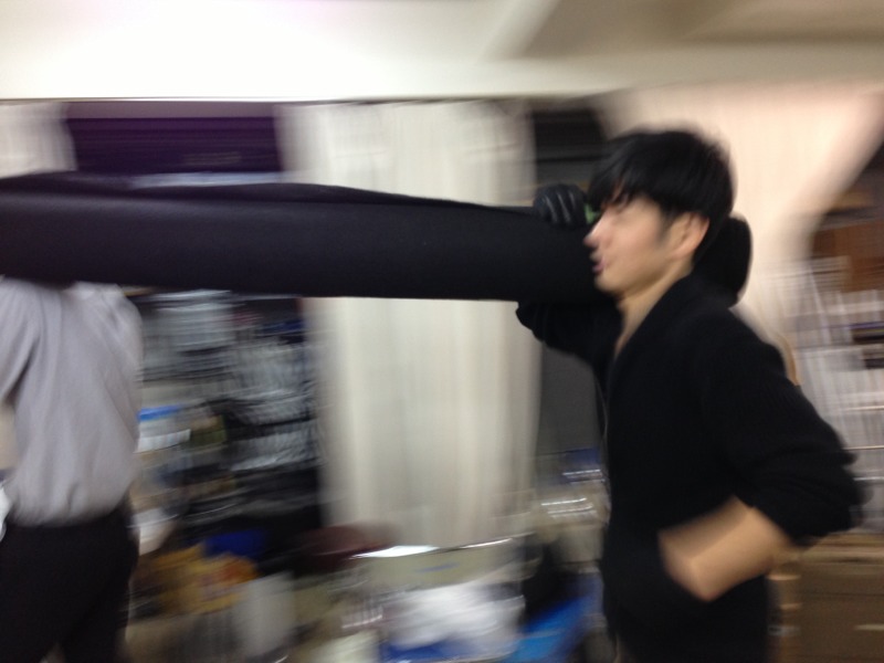 機材用布をきれいにたたむお手伝い!その場でスカウトされました!荻原さん!明日は衣装担当で、布つながり。