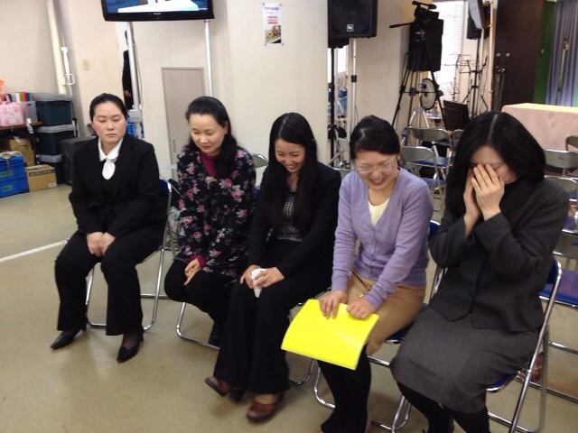 インターナショナル礼拝前の写真。皆さん、笑いをこらえてます?!