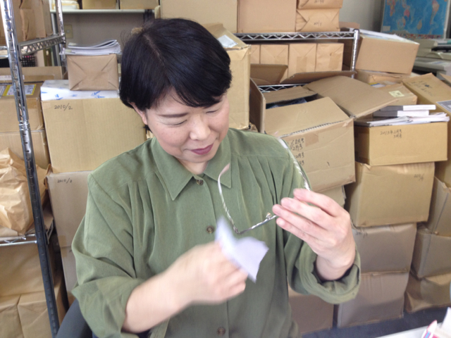 細かい作業に備えてメガネを念入りに拭く今村牧師。