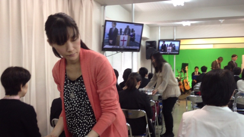 第一礼拝の聖餐式。配膳されています。