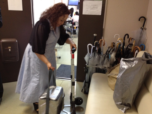 イスラエル真理子さん、機材を準備しています。