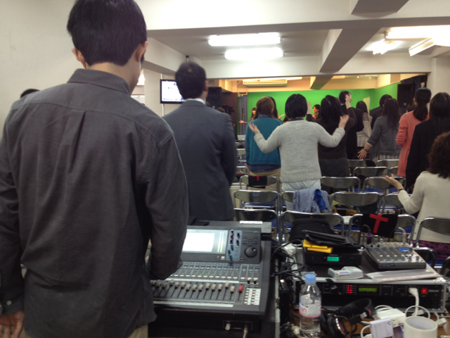 PAは辻本君、プロジェクターはノアちゃん、スイッチャーはチャチちゃんです。 若いスタッフが活躍しています。