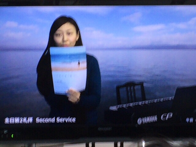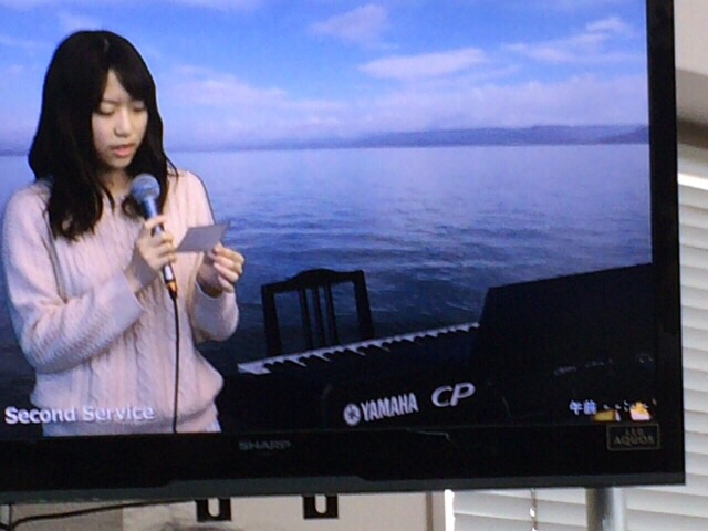 只今、聖書からのメッセ━ジ中。 ( マタイ27章27〜61。1ぺテロ2:24より。) メッセンジャ━は、ジョイさん♪ Megumi