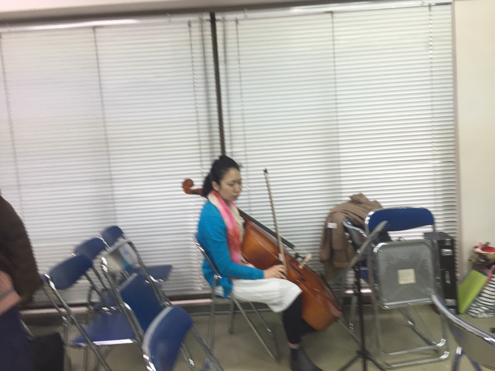 コートの中も薄着にしていて、少し寒いです。 やまなか