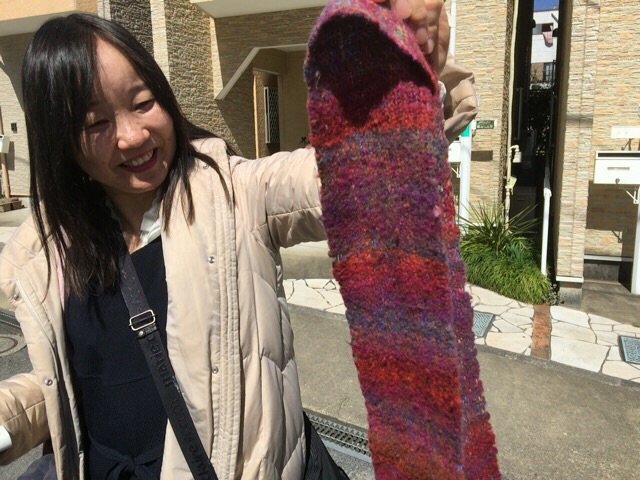 巻いていたマフラーは昔、清水さんが機織り機で織ったものだそうです。きれいです! noe