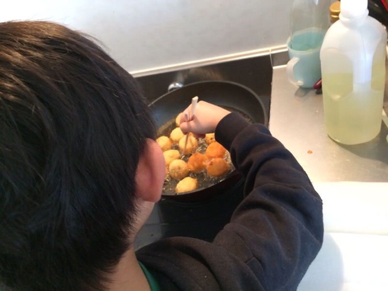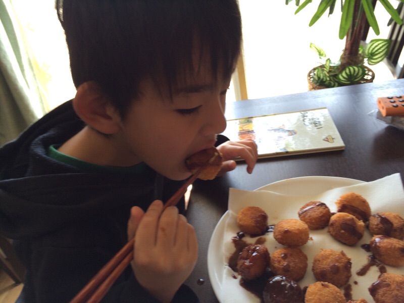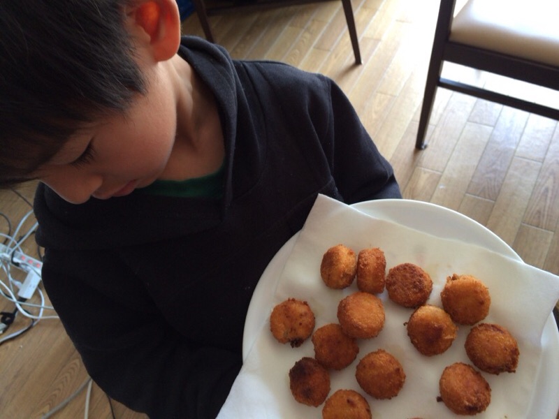 でけた!!ミニコロッケ。全部自分のだそうです。お昼はこれだけでいいそうです。 ハルぼん