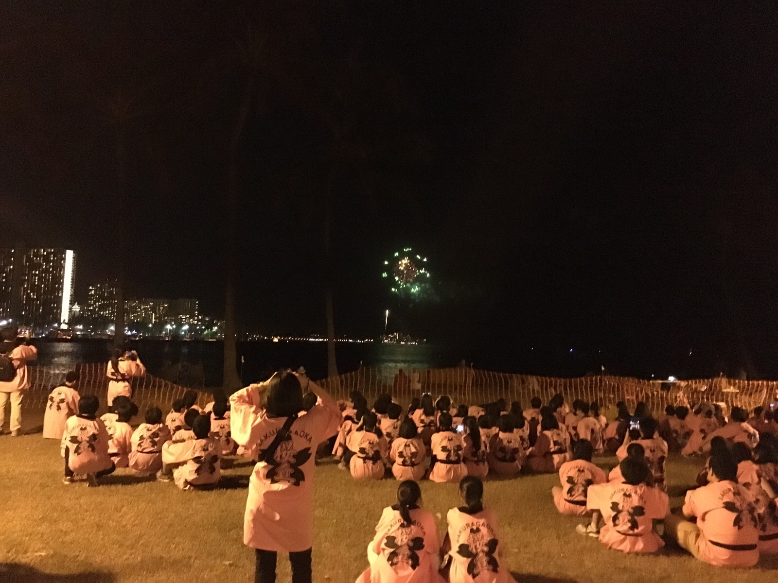 ホノルル市の姉妹都市長岡市の花火。公園で鑑賞しました。 テモテ