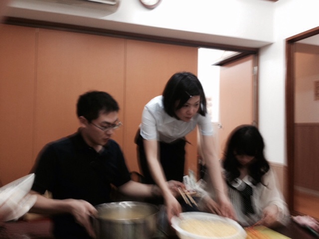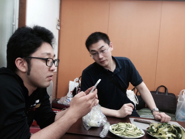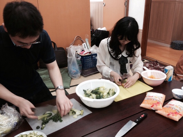 美味い美味いと、つまみ食いをする2人。ちんげん菜と小松菜は違うと、知りました。