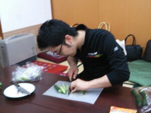 ヨツ君が、きゅうりを、切ってくれています!!☆☆☆☆