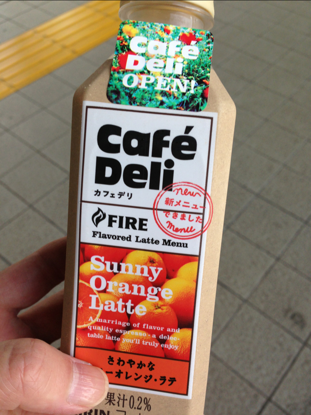 駅で人と待ち合わせています。あまりの暑さに思わず入った駅のコンビニで、面白い物を見つけました。オレンジ入りコーヒーラテです。ogi
