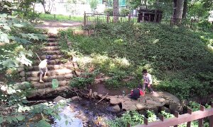 雑木林の脇を流れる小川では、子どもたちが魚とり? とっても楽しそうに遊んでいます。 (^^)♪Masako Y.