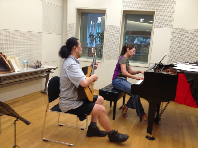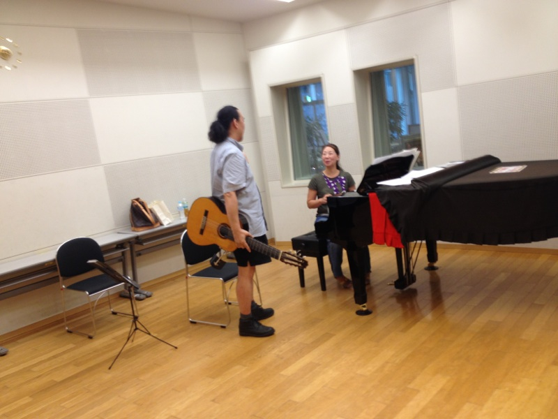 東京カリスマ聖会での演奏のため、リハーサルをしています、吉住さんと池田さん!