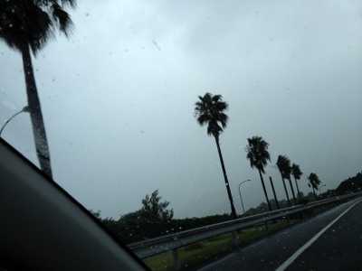 ヤシの木が風でなびいてます。 佐賀に入った途端雨足が強くなりました。