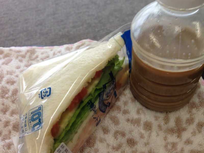 やっと受付済ませ、中に入りました! まだ時間あるので、朝食取ります。 外は雨。 Kayano