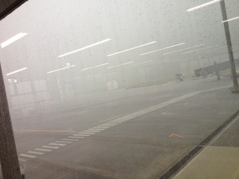 雷が鳴って、だんだん霧がかかったようになって来ました。 熊本空港は山に近くて霧がかかり易く、よく欠航になるのです。 無事出発出来ますように! Kayano