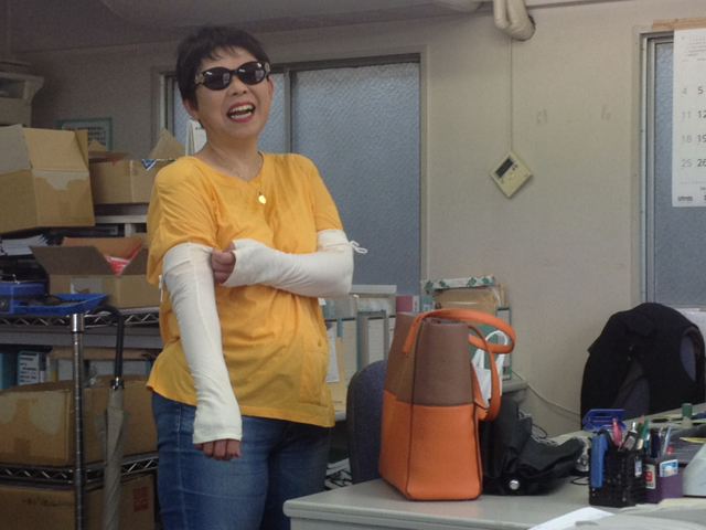 完全防備の今村牧師が到着です。 白いのは日焼け止めです。ケガをしているのではありませんよ。jk