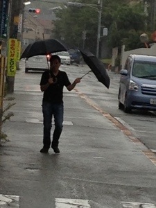 森牧師が傘を持って来てくれました。