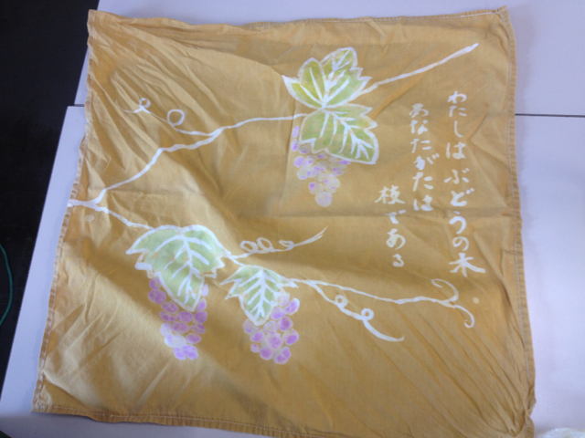 昼食タイム終了。お弁当を撮り忘れました。お弁当を包んでいるのは母のハンドメイドのこれです。jk