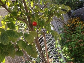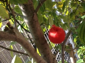 赤いナイロンネットで作ったリンゴ。子供時代、こんなリンゴを作っては弟と白雪姫の劇ごっこをしていました。観客は両親。必ず私が悪いお婆さんで、弟が白雪姫の役でした。(笑)どんな姉だったかだいたい想像できますかね。エステル