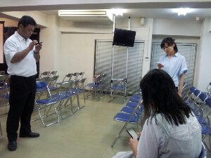 しつこく、いえいえ、熱心に、ブログのための写真を撮る益川さん。 〜教会事務所〜 ミカエル.K.Y