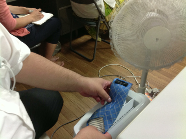 アイス(あずきバー)をネクタイとYシャツに大胆にこぼし、空気清浄機で大胆に乾かす真境名くん(^^;;