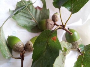 昨日の朝、アパートの近くで拾ったどんぐりです。 秋の気配を感じますね。