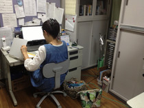 スタッフ集合。 メールの処理で、大忙し。 履修登録受付中です。 JoyMiya