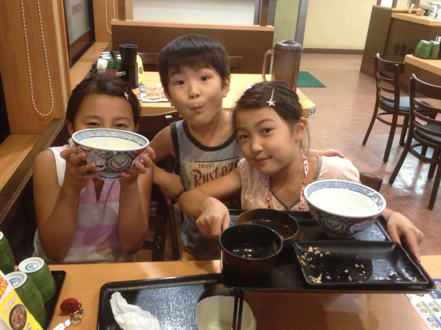 私は並ですが、 長女は大盛り 次女も牛鮭定食のご飯大盛り とにかく白飯が食べたいみたいです(^^) ちなみにダビデくんはキッズカレーでした☆